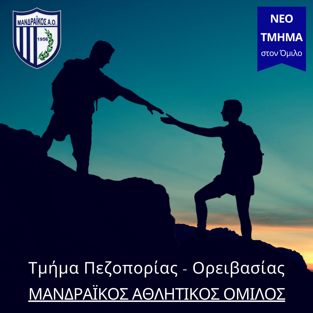 Ο Μανδραϊκός ΑΟ ιδρύει το 8ο αθλητικό τμήμα του! Με απόφαση του ΔΣ και με βάση το νέο καταστατικό του, ιδρύει Τμήμα Πεζοπορίας – Ορειβασίας. Η επαφή και η αγάπη για το βουνό και το δάσος δεν είναι κάτι άγνωστο στην Μάνδρα. Η ιστορία της πόλης και των ανθρώπων της είναι απόλυτα συνδεδεμένη με τους πανέμορφους ορεινούς όγκους της. Αυτή τη σχέση, ο Μανδραϊκός Αθλητικός Όμιλος, την μετουσιώνει σε οργανωμένη αθλητική, φυσιολατρική, ψυχαγωγική δράση. Σύντομα θα ανακοινώσουμε τον τρόπο συμμετοχής όσων ενδιαφέρονται καθώς και τις πρωτοβουλίες που θα αναπτύξουμε. Για το ΔΣ του Μανδραϊκού Χρήστος Α. Παπακωνσταντίνου, Πρόεδρος Γιάννης Καλούδας, Γενικός Αρχηγός ΣΚΟΠΟΙ 1. Η συστηματική καλλιέργεια και διάδοση της πεζοπορίας και της ορειβασίας σε όλες τους τις μορφές και εκδηλώσεις. 2. Η ανάπτυξη και διάδοση των αθλημάτων και δραστηριοτήτων σχετιζομένων με τα βουνά. 3. Η προστασία της ορεινής φύσης και η διάδοση της αγάπης και του σεβασμού προς το φυσικό περιβάλλον γενικότερα. 4. Η έρευνα και μελέτη κάθε στοιχείου που αφορά τον Δήμο μας από πεζοπορική, φυσικογεωγραφική και ιστορική άποψη. 5. Η διάδοση των γνώσεων σχετικών την ορεινή φύση στον Δήμο μας και η ενεργός συμμετοχή σε θέματα προστασίας της ΔΡΑΣΤΗΡΙΟΤΗΤΕΣ 1. Καταρτίζει προγράμματα πεζοπορίας, που πραγματοποιούνται στα βουνά της Δήμου μας και της πατρίδας μας 2. Συμμετέχει σε Σχολές Πεζοπορίας – Ορειβασίας – Αναρρίχησης και Χιονοδρομίας. 3. Καταρτίζει εκπαιδευτικά προγράμματα αποκλειστικά για παιδιά και εφήβους 4. Φροντίζει για την ενημέρωση και ψυχαγωγία των μελών και φίλων του 5. Προτείνει και βοηθάει στην ανάδειξη, σηματοδότηση και συντήρηση μονοπατιών στους ορεινούς όγκους του Δήμου μας 6. Στοχεύει στη κατασκευή καταφυγίου ικανού να φιλοξενεί πεζοπόρους και ορειβάτες 7. Συμβάλλει στην προστασία της ορεινής φύσης, διοργανώνοντας κατά καιρούς μεταξύ άλλων και δενδροφυτεύσεις 8. Συνεργάζεται με επίσημους φορείς και συμμετέχει σε συσκέψεις για θέματα σχετικά με το φυσικό περιβάλλον 9. Συστήνει ή συμμετέχει σε Ομάδα Διάσωσης και Εθελοντική Ομάδα Πυρόσβεσης 10. Παρέχει τις απαραίτητες πληροφορίες, χάρτες, κ.λ.π. σε πολίτες που θέλουν να περπατήσουν στα βουνά της Μάνδρας.