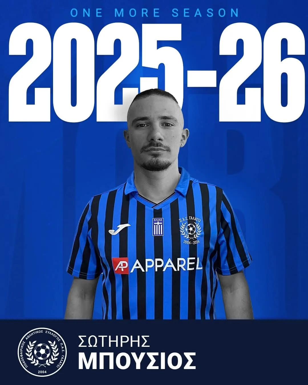Τιμή μας που αποκτήσαμε το Σωτήρη Μπούσιο τον Γενάρη του 2025, περήφανοι που ανανεώνουμε την συνεργασία μας με τον ποδοσφαιριστή και για την season 2025-26💪.