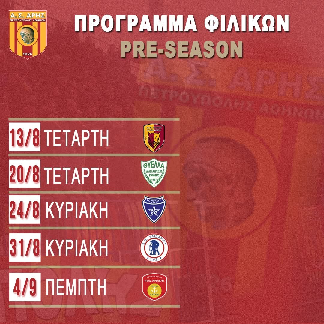 Στο πλαίσιο της προετοιμασίας, η ομάδα έχει προγραμματίσει και μια σειρά από σημαντικά φιλικά τεστ, που θα δώσουν την ευκαιρία στον προπονητή μας, Βαγγέλη Χαντέ να δουλέψει πάνω σε σχήματα και πρόσωπα: