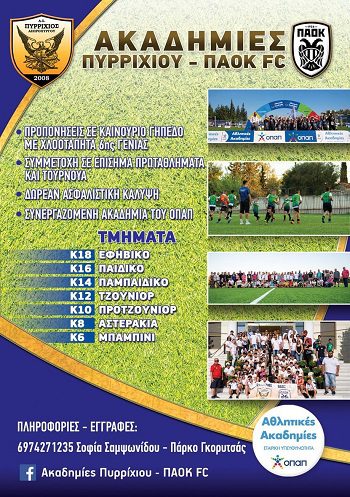 Οργανώνονται σε όλους τους τομείς Νέο Ικόνιο και Πυθαγόρας.