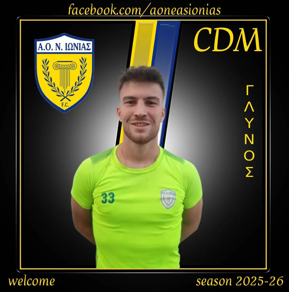 Ο Α.Ο. Νέας Ιωνίας είναι στην ευχάριστη θέση να ανακοινώσει την απόκτηση του Ιάσονα Γλυνού, ο οποίος αγωνίζεται ως αμυντικός μέσος και θα προσφέρει πολύτιμες λύσεις στον Ισίδωρο Σταυριανό.