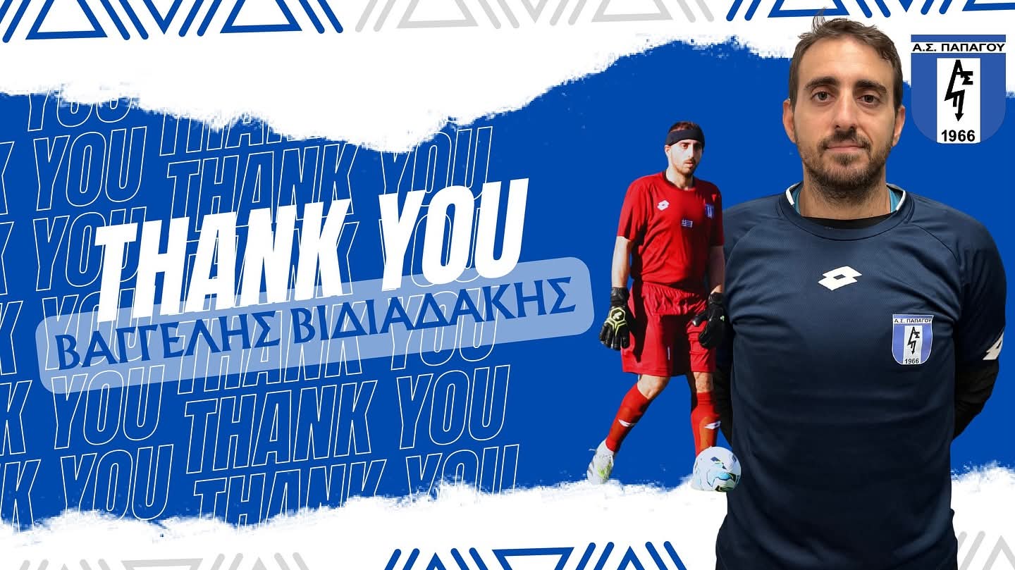 Ο Βαγγέλης Βιδιαδάκης ολοκληρώνει την παρουσία του στον Α.Σ. Παπάγου, έχοντας έρθει την φετινή σεζόν κάτω από τα δοκάρια της ομάδας μας.