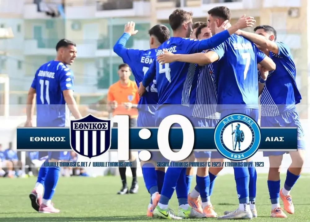 Ο Εθνικός επικράτησε με 1-0 του Αίαντα Σαλαμίνας στο γήπεδο του Μοσχάτου και συνεχίζει την πορεία του προς τον τίτλο, αντίθετα ο Αίαντας Σαλαμίνας θα πρέπει να βρεί σην συνέχεια τον καλό του εαυτό για να αποφύγει τα δυσάρεστα.