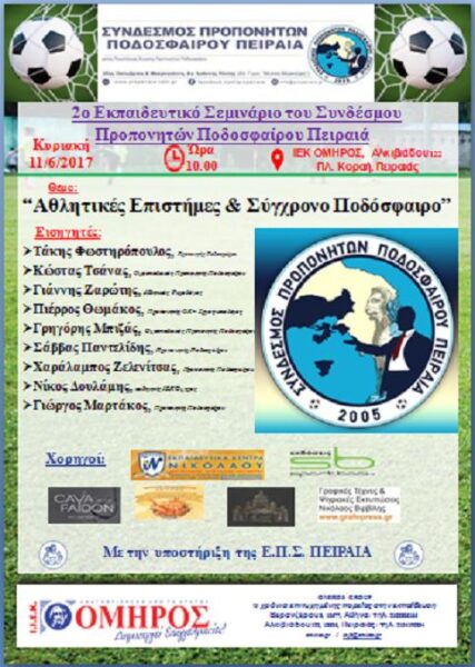 stoplekto Εκπαιδευτικό Σεμινάριο του ΣΠΠΠ Published 9 έτη ago on 07/06/2017 By Αντώνη Δαρζέντα Το 2ο εκπαιδευτικό σεμινάριο του Συνδέσμου Προπονητών Ποδοσφαιρου Πειραιά πραγματοποιείται την Κυριακή 11/6 στις 10.00 με την υποστήριξη της ΕΠΣΠ. Related Topics:ΕΠΣΠ You must be logged in to post a comment Login Leave a Reply Ακύρωση απάντησηςΓια να σχολιάσετε πρέπει να συνδεθείτε.