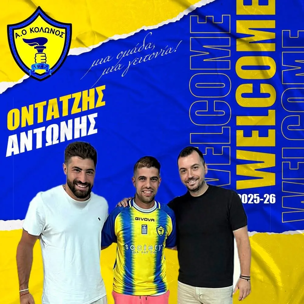 Το Διοικητικό Συμβούλιο του Α.Ο. Κολωνού ανακοινώνει την απόκτηση του έμπειρου αμυντικού μέσου Αντώνη Οντατζή που επιστρέφει στην ομάδα για δεύτερη φορά επιλέγοντας μάλιστα να κλείσει την καριέρα του με τα χρώματα του Συλλόγου μας.