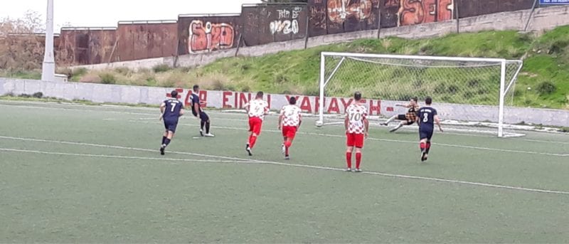 Στο 14’ άνοιξαν το σκορ . Το λάθος γύρισμα του Ξηρογιάννη εκμεταλλεύτηκε ο Χονδρουδάκης που προχώρησε αλλά ανατράπηκε από τον γκολκίπερ της Χαραυγής. Το καταφανέστατο πέναλτι μετέτρεψε σε γκολ ο Φούντας .