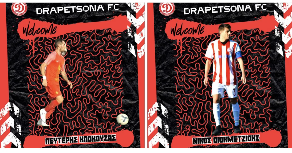 Ο Α.Σ. Δραπετσώνας με ιδιαίτερη χαρά ανακοινώνει την έναρξη της συνεργασίας με τους ποδοσφαιριστές Λευτέρη Κλόκουζα και Νίκο Διοκμετζίδη!!