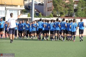 Οι παίκτες του ‘κυανοκίτρινου’ σωματείου βγήκαν στον αγωνιστικό χώρο του δημοτικού σταδίου περίπου στις 19.00, ενώ λίγο πριν είχε γίνει ο καθιερωμένος αγιασμός έξω από τα αποδυτήρια. Παρόντες στην ‘Πρώτη’ ήταν όλοι οι ποδοσφαιριστές του περσινού ρόστερ που ανανέωσαν, τα -μέχρι στιγμής επτά- μεταγραφικά αποκτήματα του καλοκαιριού, αλλά και νεαροί υπό δοκιμή ποδοσφαιριστές.