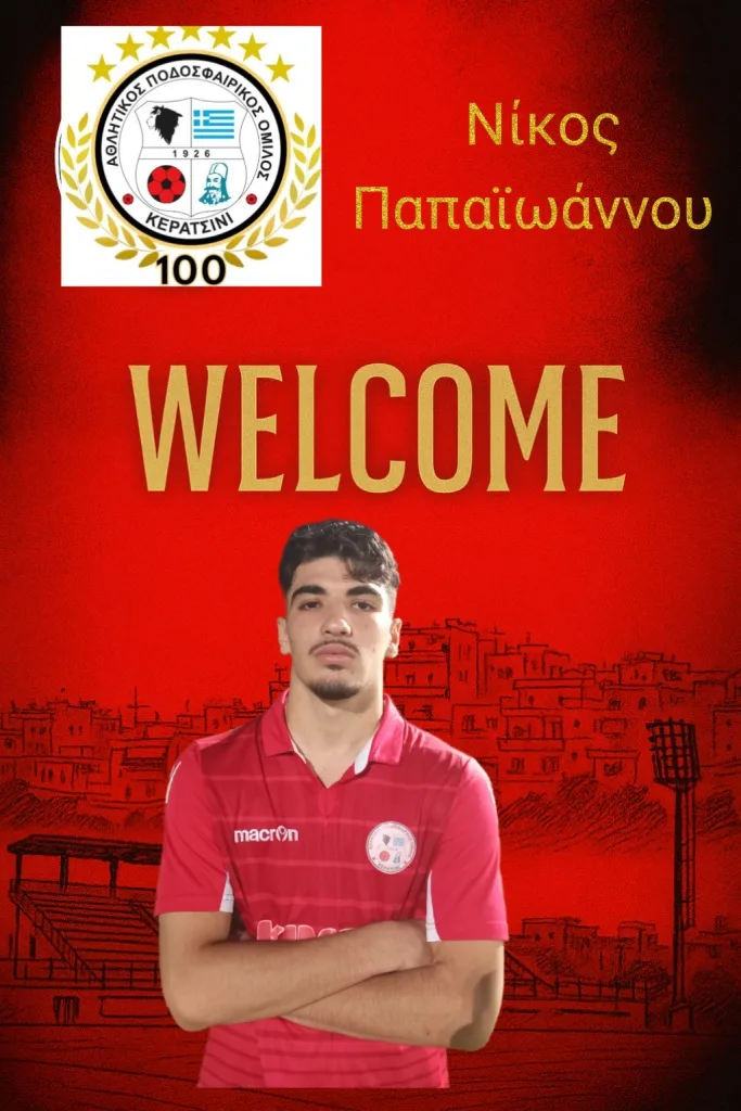 Ο ΑΠΟ Κερατσινι ανακοινώνει την έναρξη της συνεργασίας της με τον ποδοσφαιριστή Νίκο Παπαιωάννου.