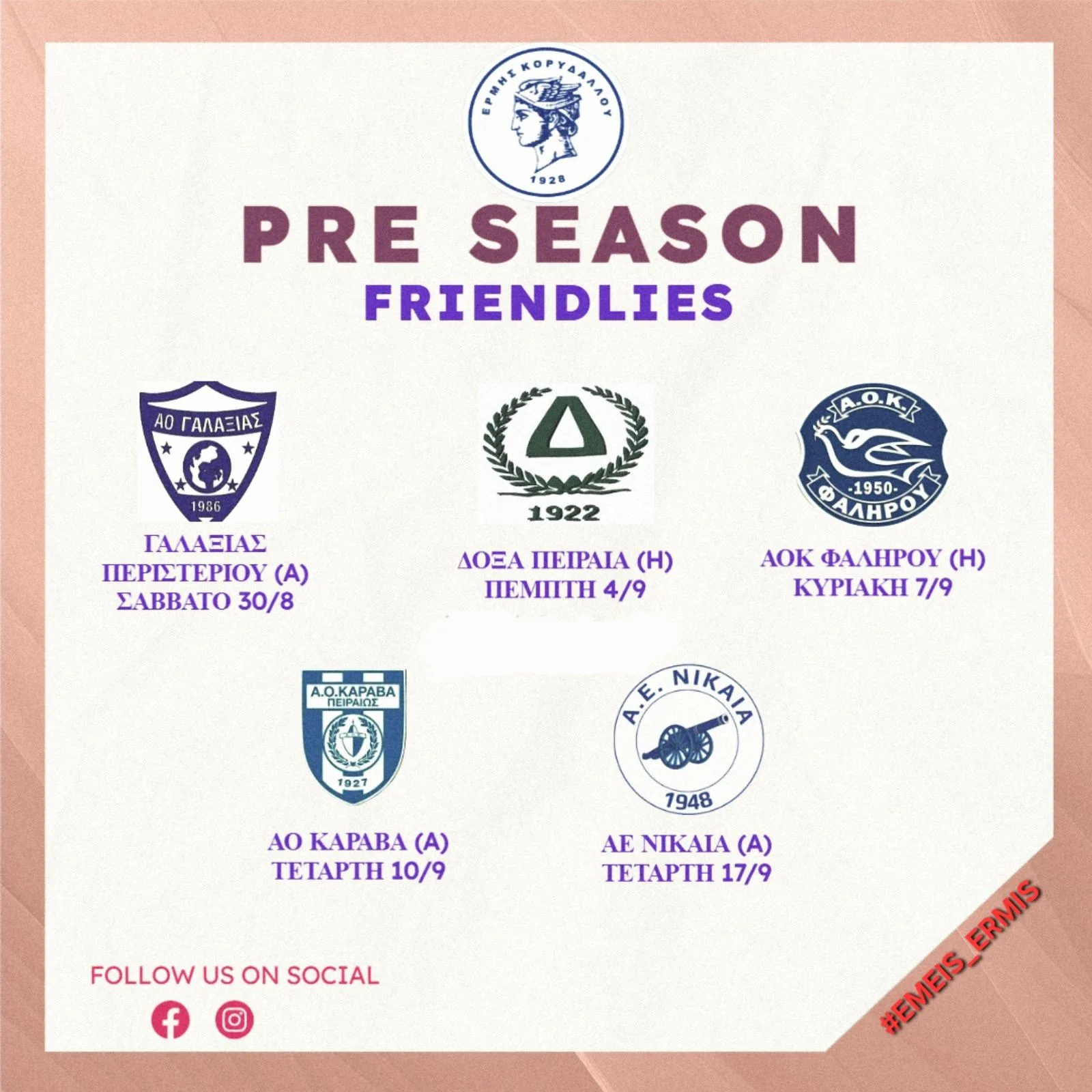 Το ΔΣ του Ερμή Κορυδαλλού ανακοίνωσε τα φιλικά της προετοιμασίας του συλλόγου. Αναλυτικά η ανακοίνωση: