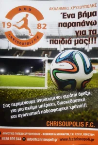 Ε.Π.Σ.Α Ξεκίνησαν οι εγγραφές στις Ακαδημίες της Χρυσούπολης Published 3 μήνες ago on 06/09/2025 By Θανάσης Ζαχάκης Share Tweet Related Topics:Χρυσούπολη You may like Χρυσούπολη- Ελπίδα Αγίων Αναργύρων 1-1 Πρώτη νίκη οι Αγιοι Ανάργυροι, 1-0 τη Χρυσούπολη Μια ανάσα από τα μπαράζ ανόδου ο ΑΟ Ιλίου, 4-0 εκτός τη Χρυσούπολη Γκολ συμπερίληψης στη Χρυσούπολη… Σταθερά ψηλά η Αλσούπολη, 2-0 τη Χρυσούπολη Ζωντανά για την παραμονή τα Ιλίσια 2004, 2-0 εκτός τη Χρυσούπολη