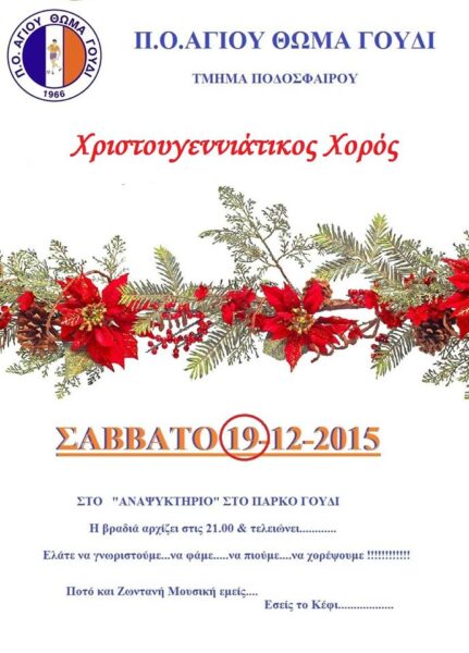 ‘Χορεύει’ ο Άγιος Θωμάς το ερχόμενο Σάββατο 19 Δεκεμβρίου στο μαγαζί ‘Αναψυκτήριο’, το οποίο βρίσκεται στο πάρκο Γουδί. Η βραδιά για τους φίλους της ομάδας και όχι μόνο θα αρχίσει στις 21:00 και θα διαρκέσει μέχρι τις πρώτες πρωινές ώρες. Το πρόγραμμα περιλαμβάνει ποτό, φαγητό και άφθονη διασκέδαση με ζωντανή μουσική. Η είσοδος θα είναι 10 ευρώ με ένα ποτό!
