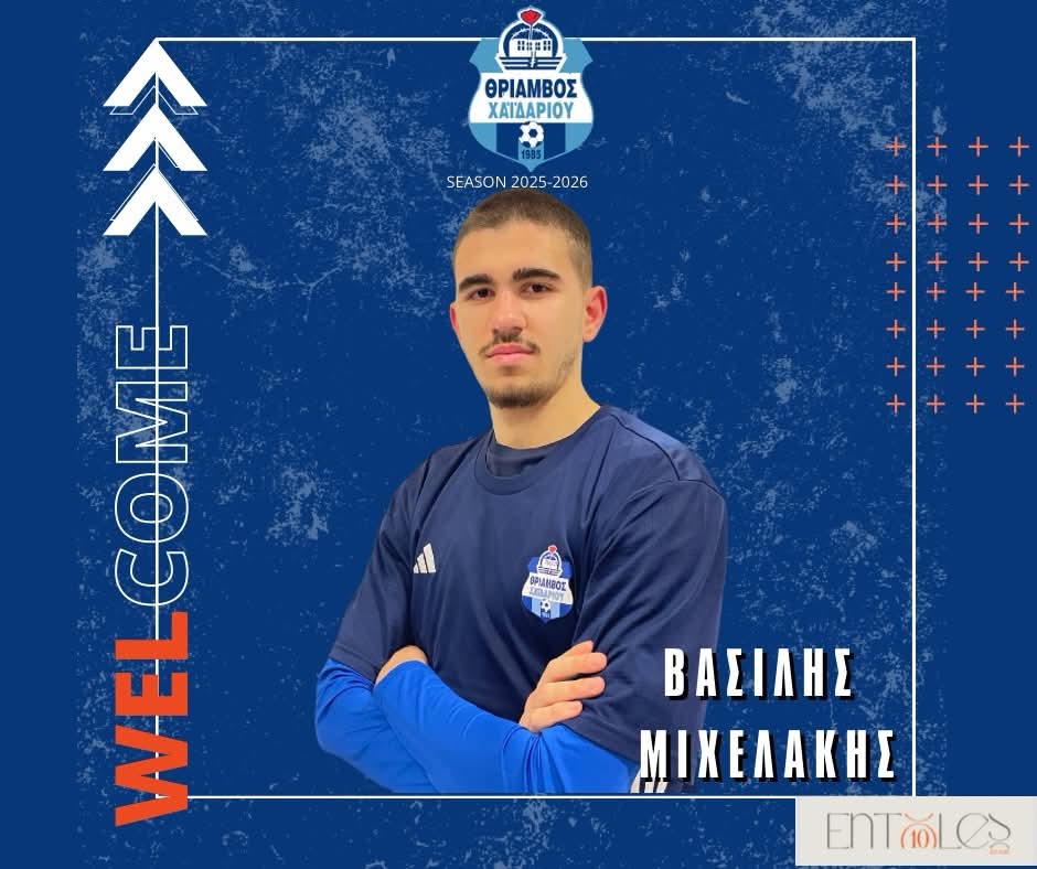 Ο Βασίλης Μιχελάκης εντάσσεται στο ρόστερ του Θριάμβου Χαϊδαρίου για τη σεζόν 2025–2026, αποτελώντας ταυτόχρονα μία προσθήκη με αναπτυξιακό χαρακτήρα και προοπτική. 🤝⚽.