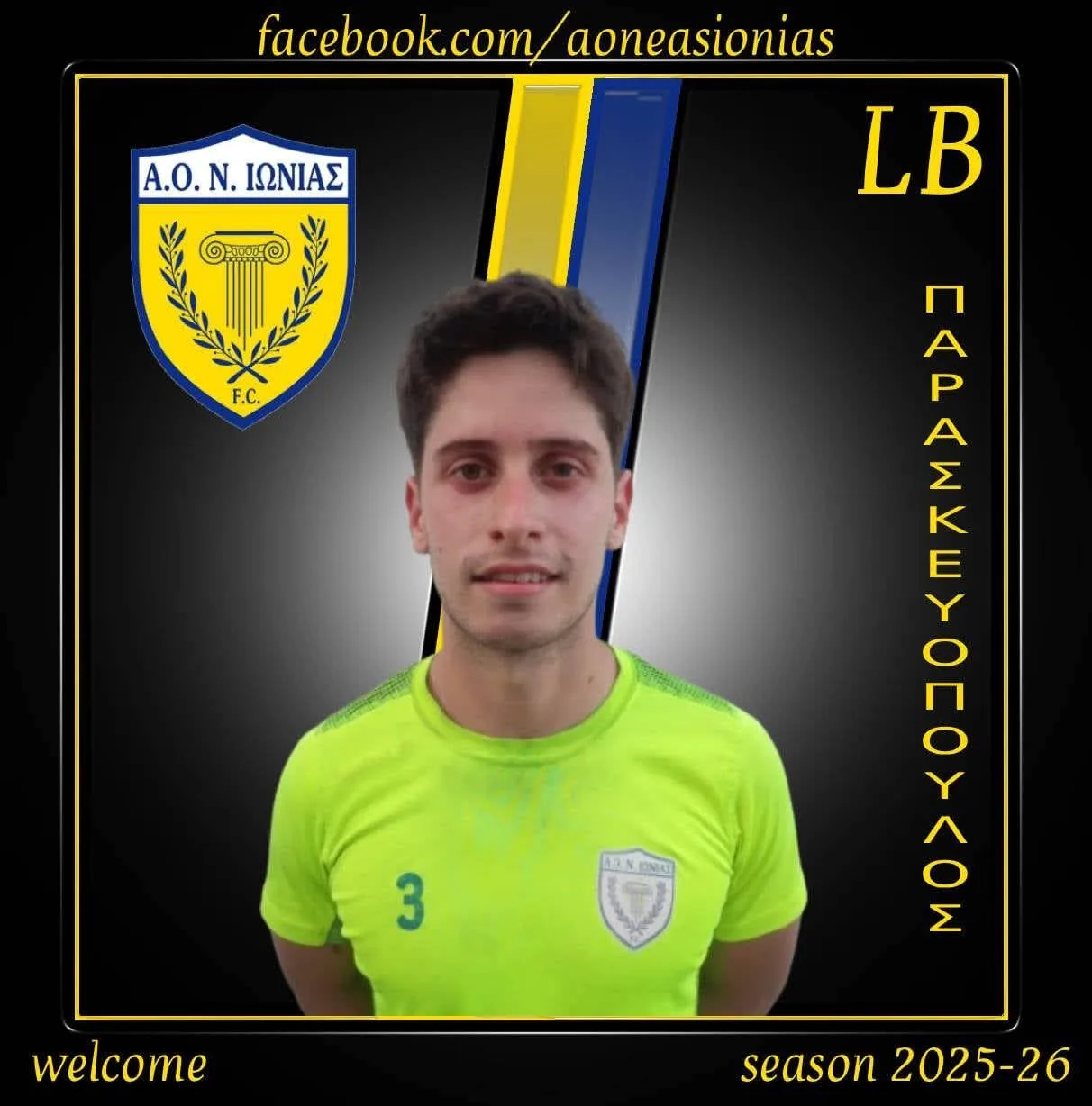 Ο Α.Ο. Νέας Ιωνίας είναι στην ευχάριστη θέση να ανακοινώσει την απόκτηση του Παναγιώτη Παρασκευόπουλου, ο οποίος αγωνίζεται ως αριστερός μπακ αλλά και εξτρέμ και θα προσφέρει πολύτιμες λύσεις στον Ισίδωρο Σταυριανό.