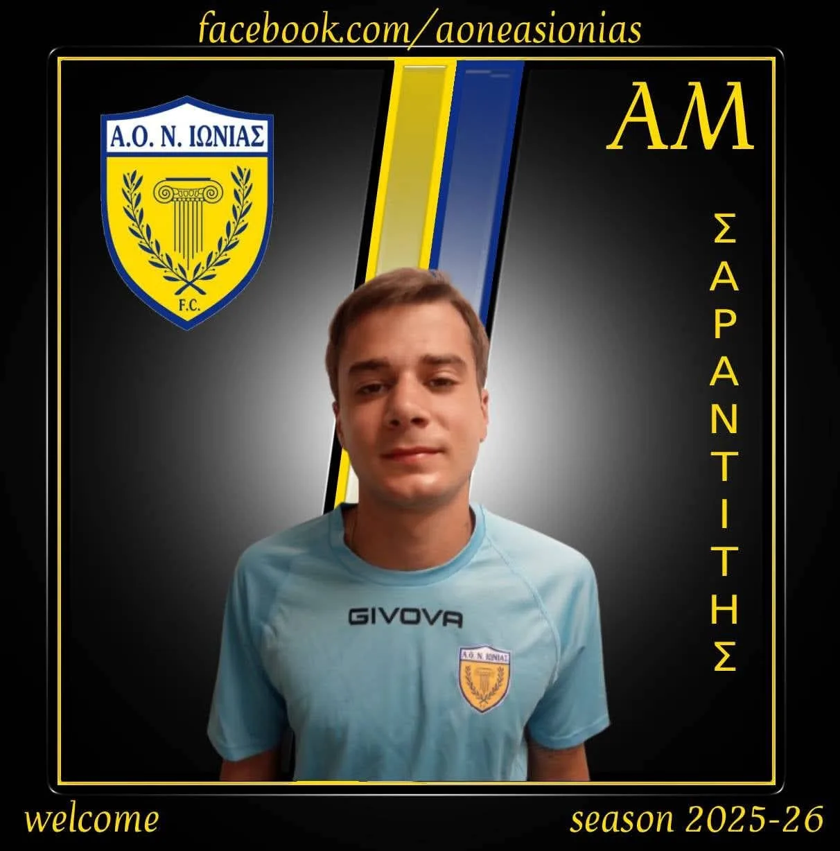 Ο Α.Ο. Νέας Ιωνίας είναι στην ευχάριστη θέση να ανακοινώσει την απόκτηση του Βασίλη Σαραντίτη, ο οποίος αγωνίζεται ως μεσοεπιθετικός και θα προσφέρει πολύτιμες λύσεις στον Ισίδωρο Σταυριανό.