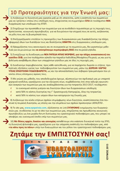 slideshow Ποδοσφαιρική Συνεργασία: Ζητάμε την ΕΜΠΙΣΤΟΣΥΝΗ σας! Published 12 έτη ago on 11/06/2013 By admin Share Tweet Ο συνδυασμός “ΠΟΔΟΣΦΑΙΡΙΚΗ ΣΥΝΕΡΓΑΣΙΑ” καταθέτει τις δέκα προτεραιότητες του για την Ένωση μας, μαζί με ένα σύντομο βιογραφικό των υποψήφιων μας . Related Topics: You may like Click to comment You must be logged in to post a comment Login Leave a Reply Ακύρωση απάντησηςΓια να σχολιάσετε πρέπει να συνδεθείτε.