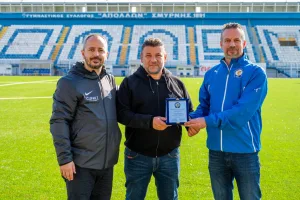 Τιμητικές-ευχαριστήριες πλακέτες απονεμήθηκαν στον Απόλλωνα Σμύρνης και τον πρόεδρο Αλέξανδρο Κουκά, καθώς και στον Σάκη Τσιώλη που βοήθησαν να διεξαχθεί ο τελικός σε ένα ιστορικό γήπεδο της Ελλάδος.
