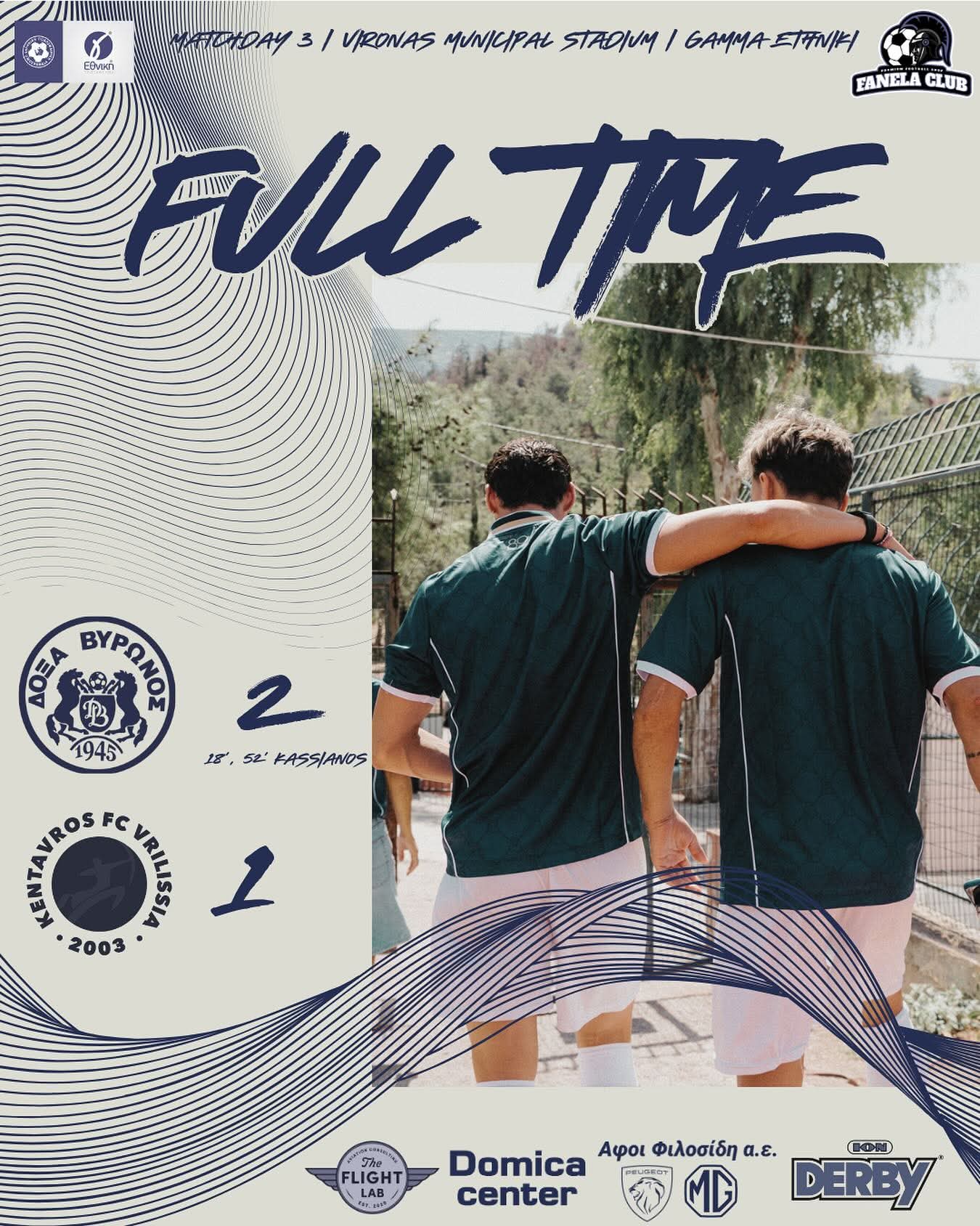 Πρώτη νίκη η Δόξα Βύρωνος, 2-1 τον Κένταυρο Βριλησσίων