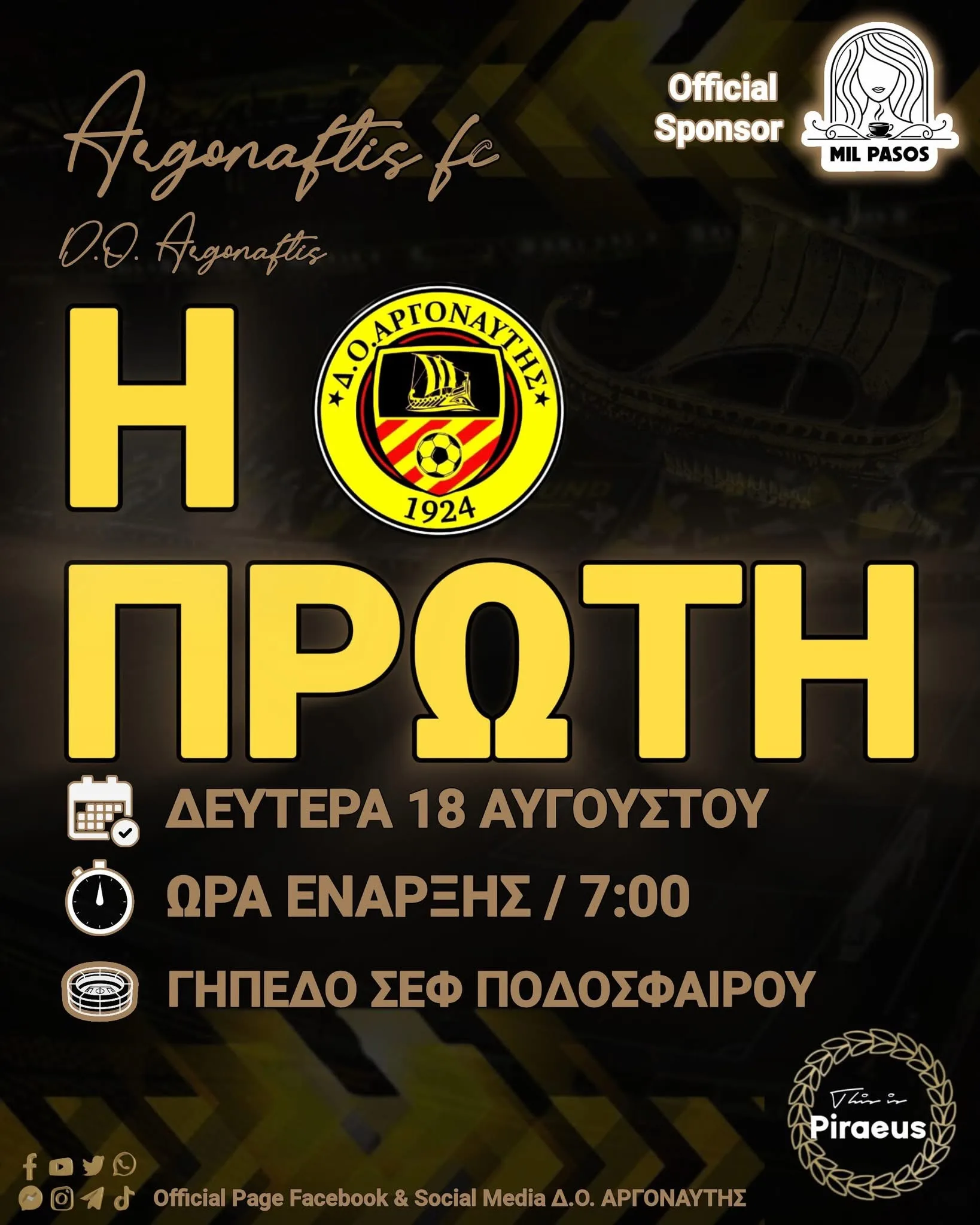 Καλη αρχή! Καλή σεζόν για τον ιστορικό Αργοναύτη μας με υγεία πάνω από όλα σε όλο τον αθλητικό κόσμο και μη και πολλές επιτυχίες για την ομάδα μας.
