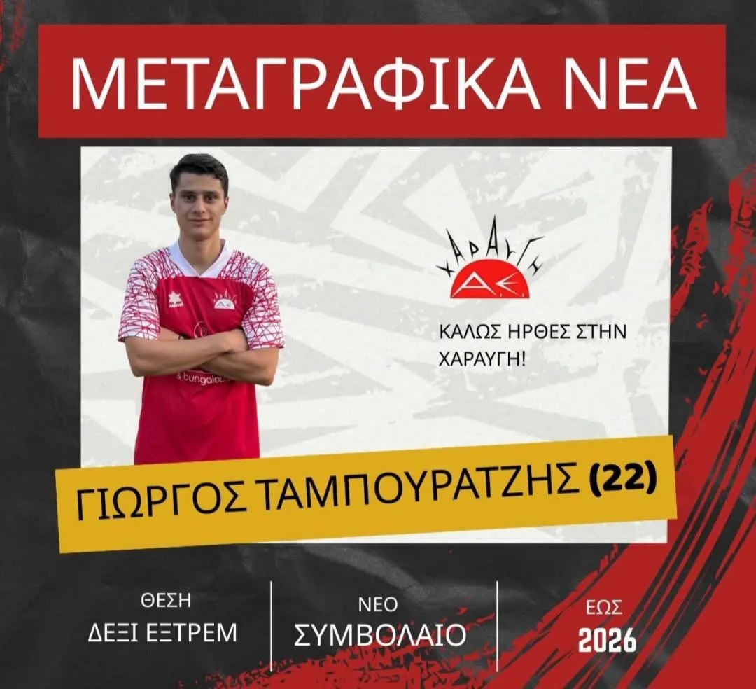 Τον καλωσορίζουμε στην οικογένεια της Χαραυγής και του ευχόμαστε υγεία και πολλές επιτυχίες με τα χρώματά μας!