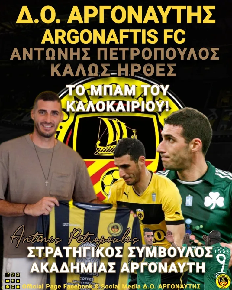Στον Αργοναύτη ο Αντώνης Πετρόπουλος!!! – Τι αναλαμβάνει…