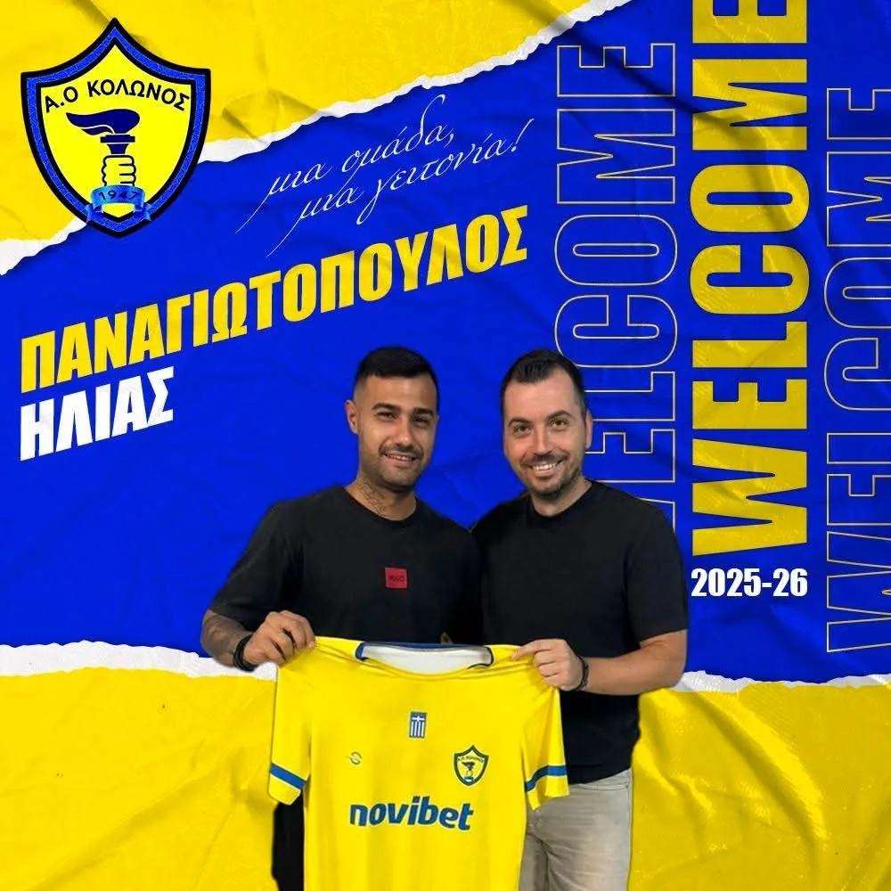 Το Διοικητικό Συμβούλιο του Α.Ο. Κολωνού ανακοινώνει την απόκτηση του 29χρονου επιθετικού Ηλία Παναγιωτόπουλου ο οποίος κατά την περσινή αγωνιστική περίοδο αγωνιζόταν στην ομάδα του Κεραυνού Αγίας Βαρβάρας.