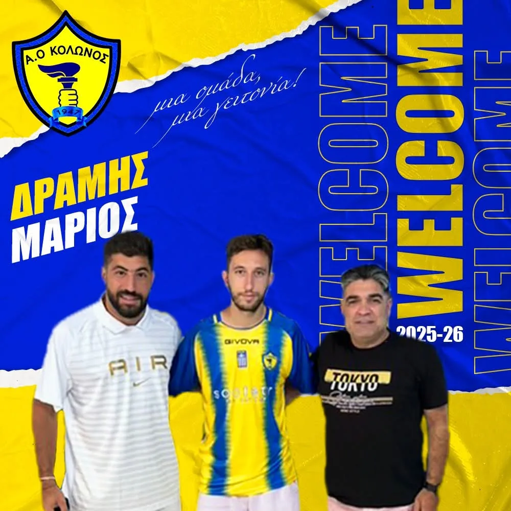 Το Διοικητικό Συμβούλιο του Α.Ο. Κολωνού ανακοινώνει την απόκτηση του ακραίου επιθετικού Μάριου Δράμη.