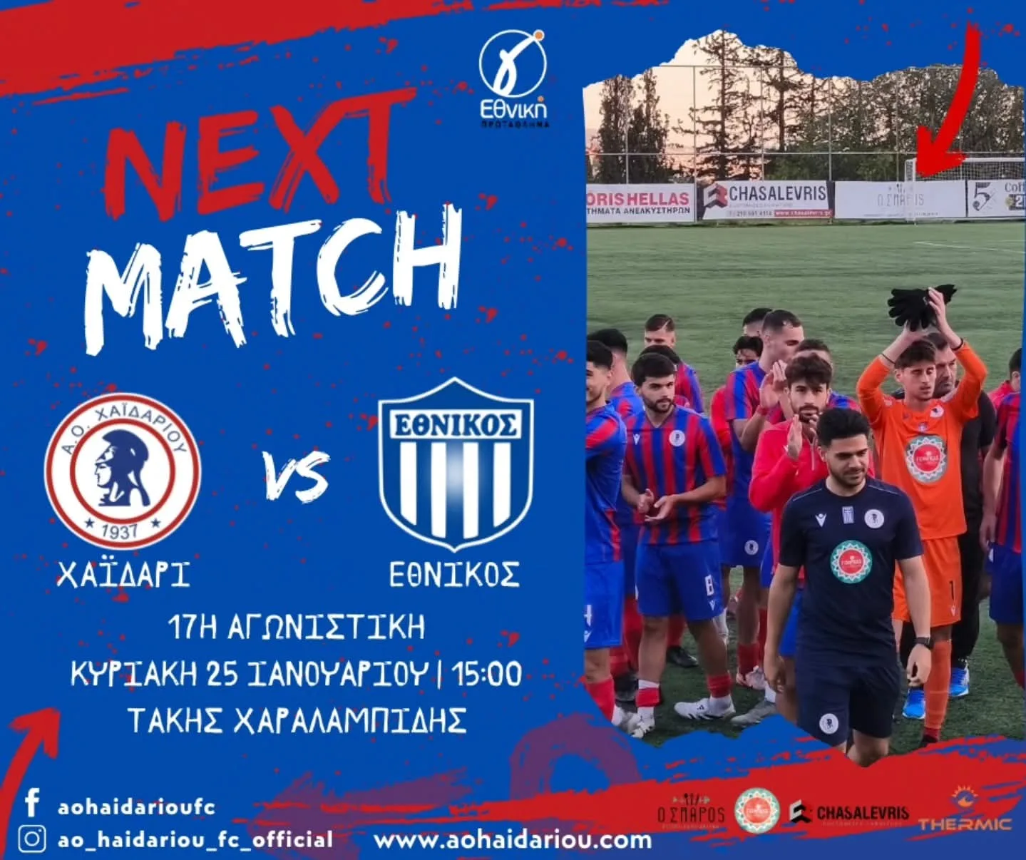 Το κάλεσμα του ΑΟ Χαϊδαρίου για το ντέρμπι με τον Εθνικό