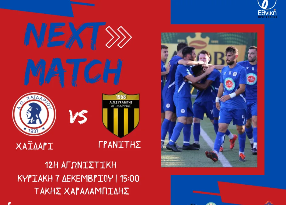Ο Α.Ο. Χαϊδαρίου παίζει το σημαντικότερο παιχνίδι της φετινής χρονιάς, στο ξεκίνημα του δεύτερου γύρου, απέναντι στον Γρανίτη.