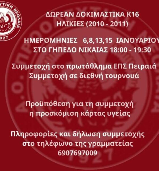 Ολοκληρώθηκαν με επιτυχία οι τελικοί του πρωταθλήματος Κ-16 που διοργάνωσε η Ένωση Ποδοσφαιρικών Σωματείων Πειραιά, στο γήπεδο Μοσχάτου. Πρωταθλήτρια αναδείχτηκε η ομάδα του ΑΟΚ Φαλήρου που...