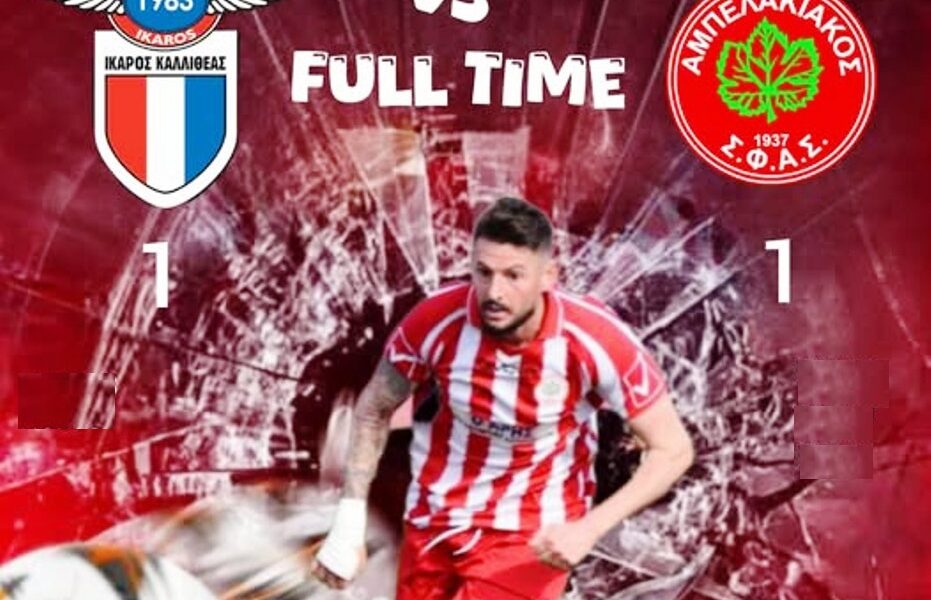 Χωρίς νικητή ολοκληρώθηκε η αναμέτρηση ανάμεσα σε Ίκαρο Καλλιθέας και Αμπελακιακό, με τις δύο ομάδες να αναδεικνύονται ισόπαλες 1-1 στο γήπεδο της Παραλίας, σε ένα ματς...