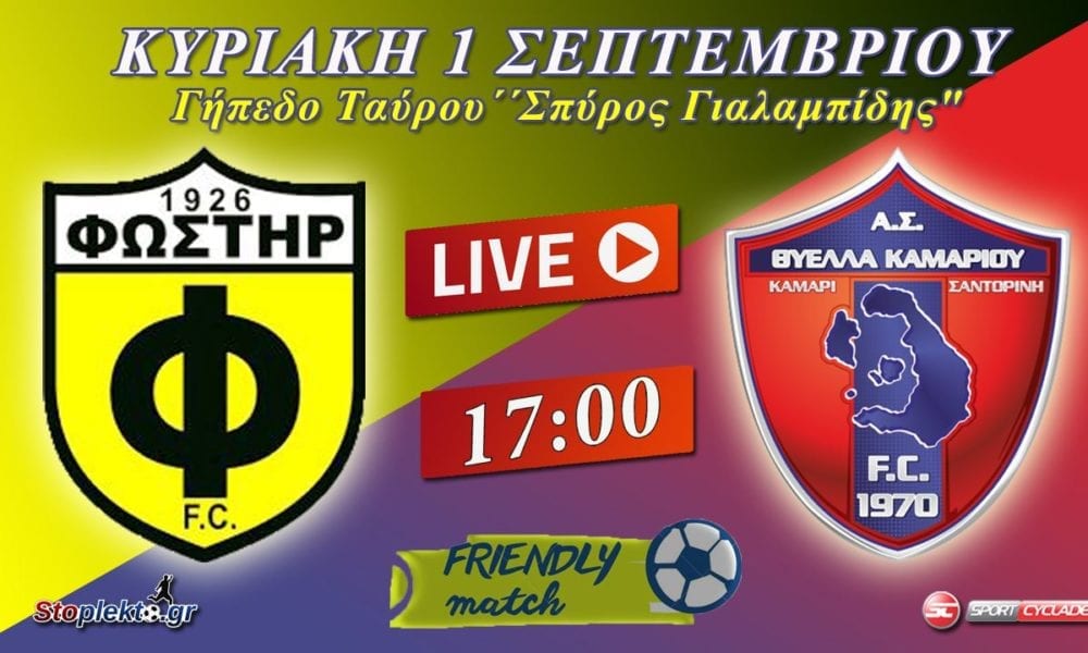 Παρακολουθήστε σε ζωντανή μετάδοση από το Δημοτικό Γήπεδο Ταύρου “Σπύρος Γιαλαμπίδης” την φιλική αναμέτρηση προετοιμασίας μεταξύ των ομάδων του Φωστήρα και της Θύελλας Καμαρίου.