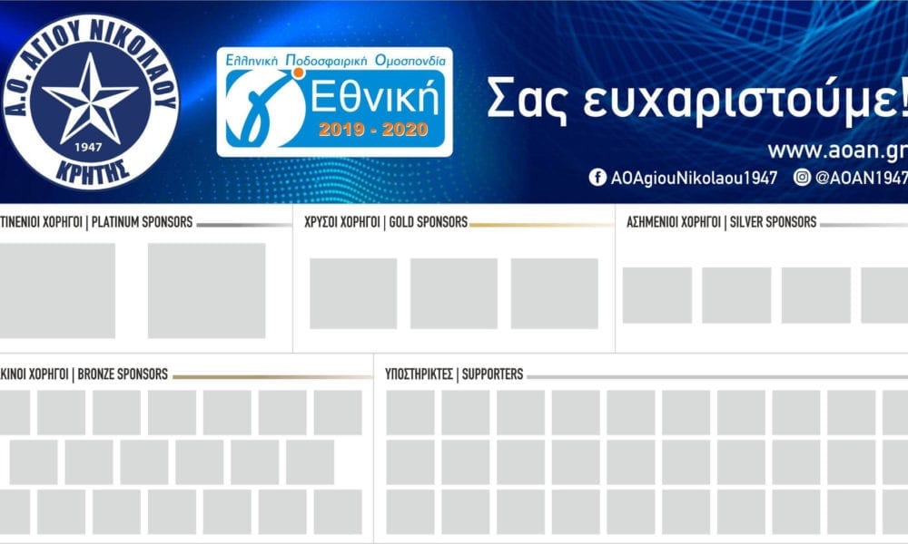 Δείτε το διαφημιστικό πλάνο-χορηγιών που παρουσία ο ΑΟΑΝ στην ιστοσελίδα του. Το κειμενο Κεντρικός χορηγός φανέλας στο μπροστά μέρος στο πρωτάθλημα της Γ’εθνικης κατηγορίας Κεντρικός χορηγός...
