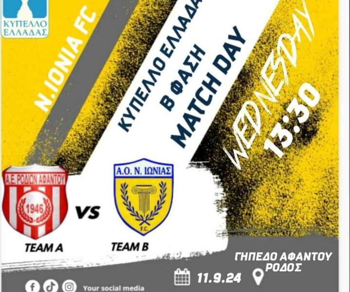 Το ακόλουθο δελτίο Τύπου εξέδωσε η Νέα Ιωνία… Ανακοινώνουμε ότι ο αγώνας κυπέλλου Ελλάδας betsson ανάμεσα στην Α.Ε.Ρ Αφάντου και την Νέα Ιωνία που ήταν να...