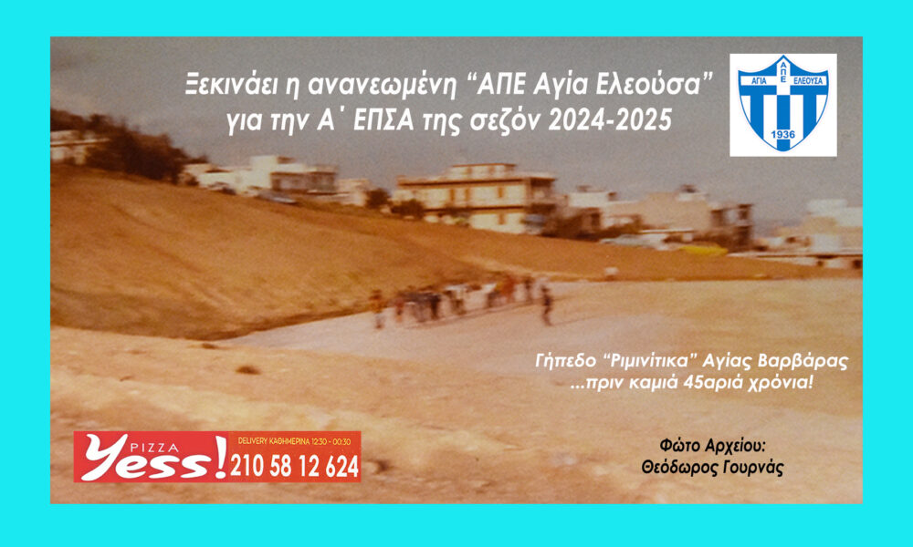 Ελεούσα, η οποία αύριο απόγευμα Δευτέρας 29 Ιουλίου 2024, θα έχει στο γήπεδο “Ριμινίτικα” της Αγίας Βαρβάρας, το πρώτο ποδοσφαιρικό… ραντεβού για την έναρξη της προετοιμασίας...
