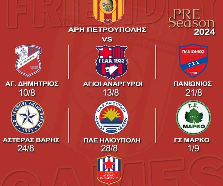 Το πρόγραμμα της προετοιμασίας και των φιλικών αγώνων που θα δώσει η ομάδα ανακοίνωσε ο Άρης Πετρούπολης. Το δελτίο Τύπου… 🔴🟡𝚬𝚴𝚮𝚳𝚬𝚸𝛀𝚺𝚮 𝚪𝚰𝚨 𝚻𝚮𝚴 𝚬𝚴𝚨𝚸𝚵𝚮 𝚻𝚮𝚺 𝚷𝚸𝚶𝚬𝚻𝚶𝚰𝚳𝚨𝚺𝚰𝚨𝚺...
