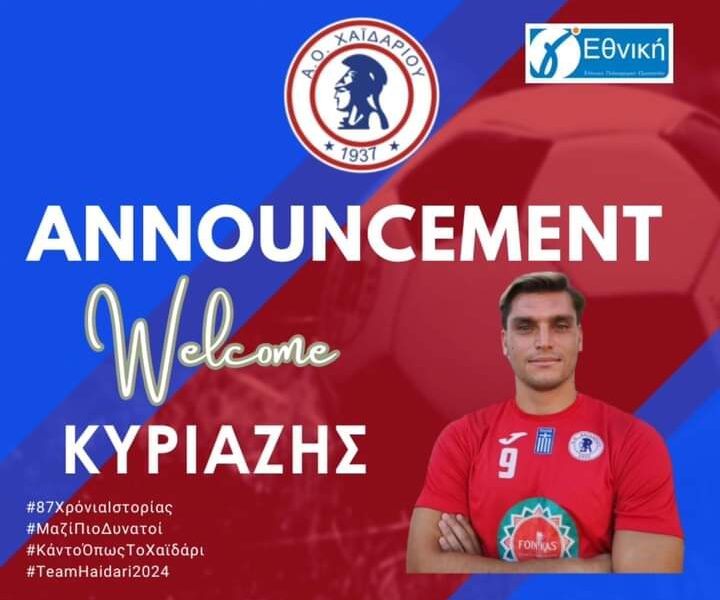 Το ακόλουθο δελτίο Τύπου εξέδωσε ο ΑΟ Χαϊδαρίου… Ο Πρόεδρος Μιχάλης Θεοδοσιάδης και το Διοικητικό Συμβούλιο του Α.Ο. Χαϊδαρίου, ανακοινώνουν την απόκτηση του 27χρονου επιθετικού Αντώνη...