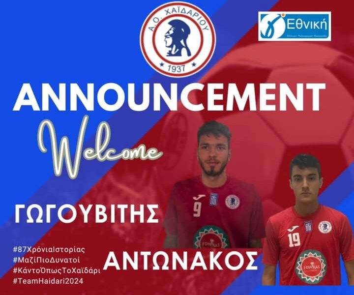 Το ακόλουθο δελτίο Τύπου εξέδωσε ο ΑΟ Χαϊδαρίου… Ο Πρόεδρος Μιχάλης Θεοδοσιάδης και το Διοικητικό Συμβούλιο του Α.Ο. Χαϊδαρίου, ανακοινώνουν τις μεταγραφές του αμυντικού Γωγουβίτη Άγγελου...