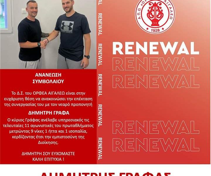 Με τον Δημήτρη Γράφα στην τεχνική ηγεσία θα προχωρήσει και τη νέα σεζόν ο Ορφέας Αιγάλεω. Το δελτίο Τύπου… Το Δ.Σ. του ΟΡΦΕΑ ΑΙΓΑΛΕΩ είναι στην...