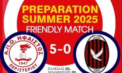 Εμφατική φιλική επικράτηση για τον Ηφαιστο Περιστερίου, που νίκησε τον ΑΟ Περιστερίου με 5-0. Η ενημέρωση του Ηφαίστου… Νικηφόρο το τέταρτο φιλικό προετοιμασίας για την ομάδα...