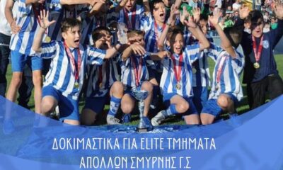 Ο Γ.Σ Απόλλων Σμύρνης ανακοινώνει ότι στις αρχές Σεπτεμβρίου θα πραγματοποιηθούν δοκιμαστικά για την ένταξη στα ELITE τμήματα της Ακαδημίας μας, για ποδοσφαιριστές γεννηθέντες 2009 και...